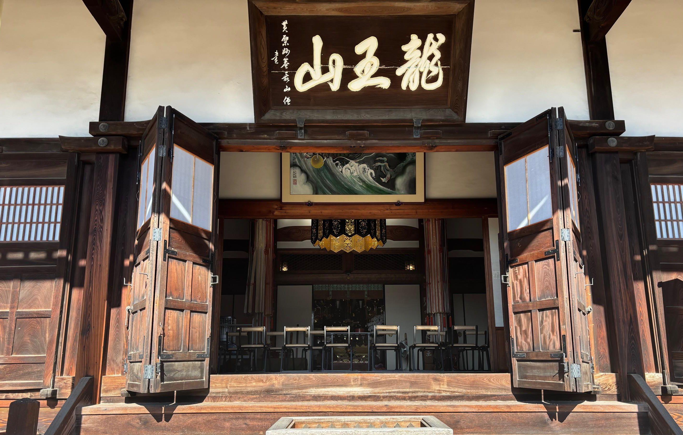 その教えの中に「唯心の浄土・己身の弥陀」という言葉があります。これは「ただ心の中にこそ極楽浄土がある。」「己の身そのものが阿弥陀仏(仏)である」ということで、 つまり人は皆、本来生まれながらにして「仏」である。又は仏の心を持った存在であることを説いておられます。しかし人間生まれて生きていくうちに、世間の煩悩や欲望に侵されて、 もって生まれた仏を汚していってしまいます。ですから黄檗宗では禅(坐禅・臥禅・立禅など)を実践し、精進することによって萬福寺本尊で、己を見つめ直し、自らの仏に磨きをかけていくことを教えの主としています。